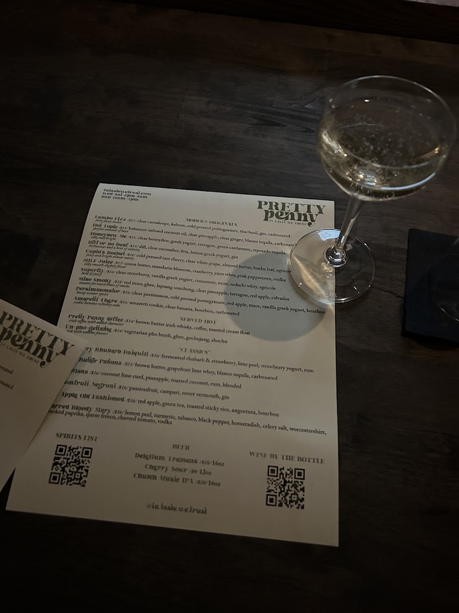 The atmosphere strikes a perfect balance between elegance and coziness, making it ideal for intimate gatherings. Exceptional service enhances the experience, ensuring a memorable evening. Whether you're a cocktail connoisseur or a food lover, Pretty Penny promises a delightful journey through innovative flavors and inviting ambiance.
